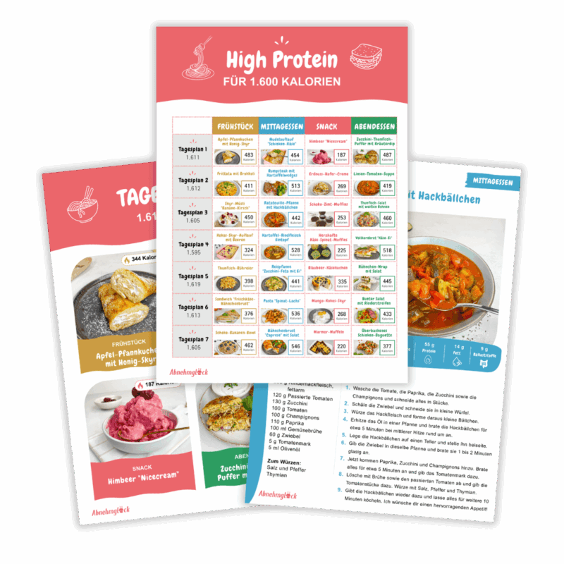 Hol dir jetzt die 📙 Pläne “High Protein” dazu für noch mehr Flexibilität beim Abnehmen